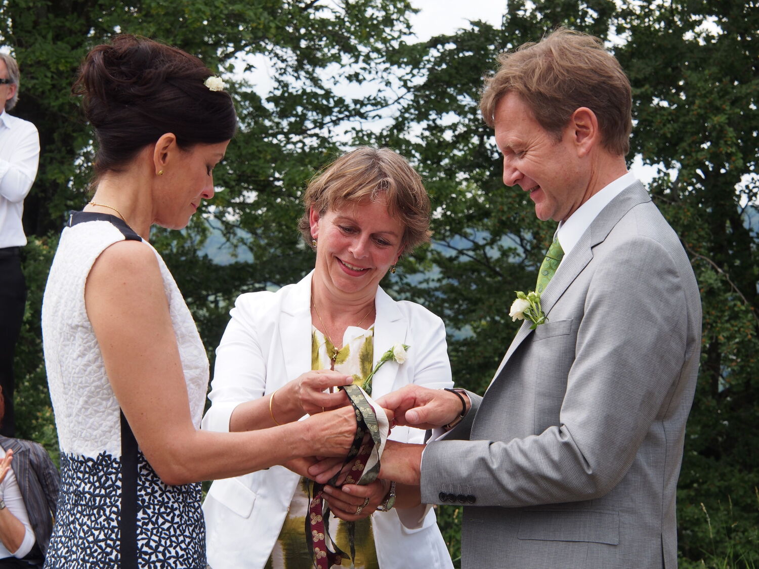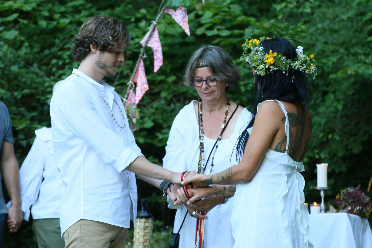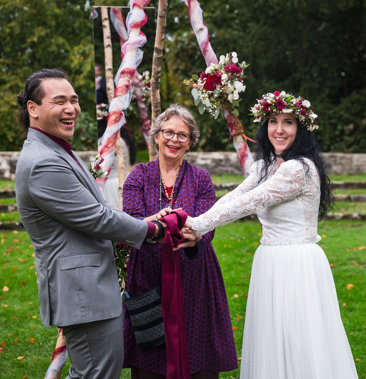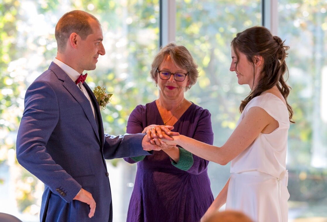 We had a wonderful wedding ceremony with the help of Britta. We contacted her on short notice, but this was not a problem at all. She immediately started to get involved and took the time to get to know us. She then created a ceremony with a very good balance between providing a basic structure of events and integrating our wishes, adapting the wording to our values. Communication with her during this process was easy and clear. The resulting ritual was a beautiful and moving experience. She created a very strong atmosphere and had a brilliant way of involving family and friends in the ceremony. More than one person left the circle with tears in her or his eyes. We are very grateful for having found Britta to guide this special moment for us.