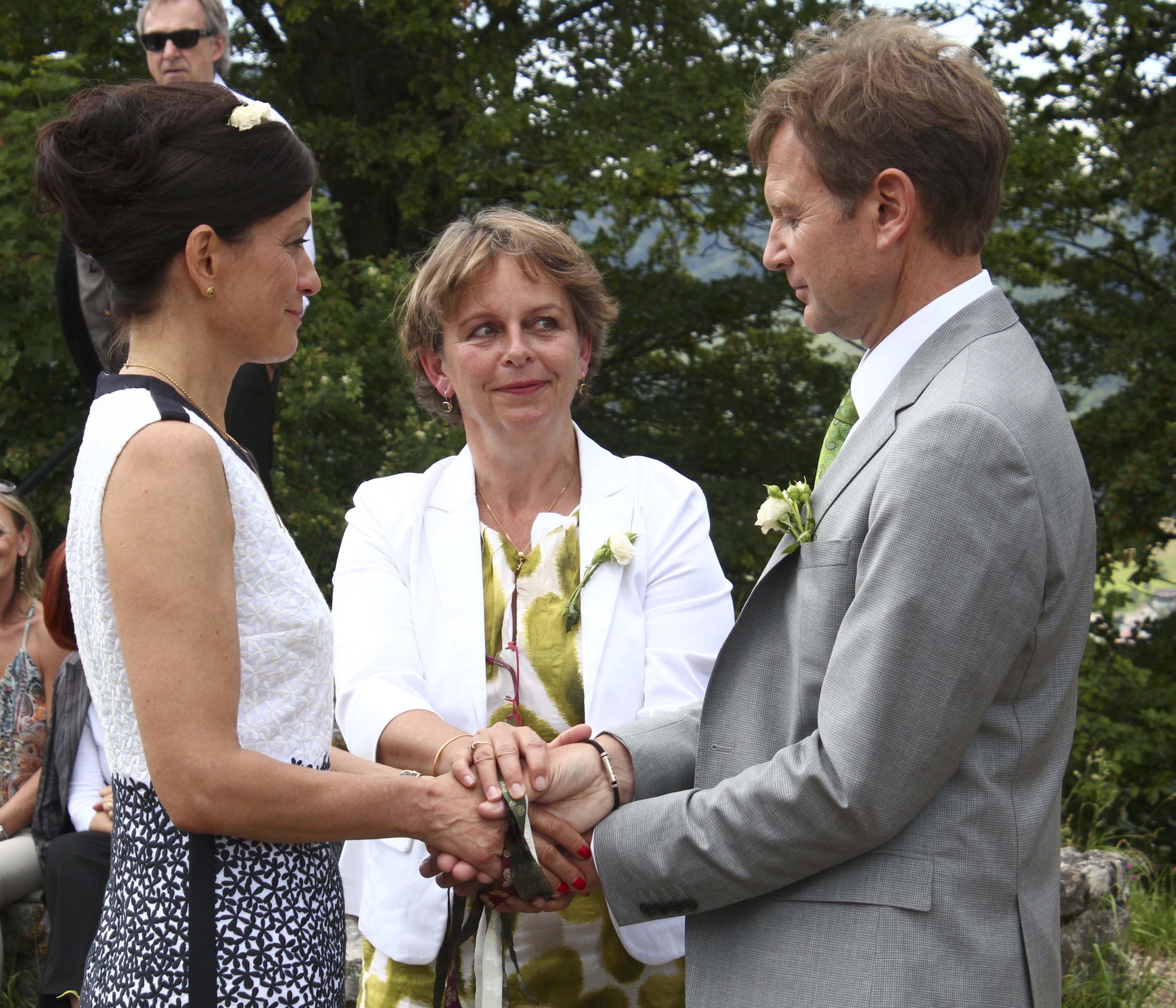 "We had a wonderful wedding ceremony with the help of Britta. We contacted her on short notice, but this was not a problem at all. She immediately started to get involved and took the time to get to know us. She then created a ceremony with a very good balance between providing a basic structure of events and integrating our wishes, adapting the wording to our values. Communication with her during this process was easy and clear. The resulting ritual was a beautiful and moving experience. She created a very strong atmosphere and had a brilliant way of involving family and friends in the ceremony. More than one person left the circle with tears in her or his eyes. We are very grateful for having found Britta to guide this special moment for us."